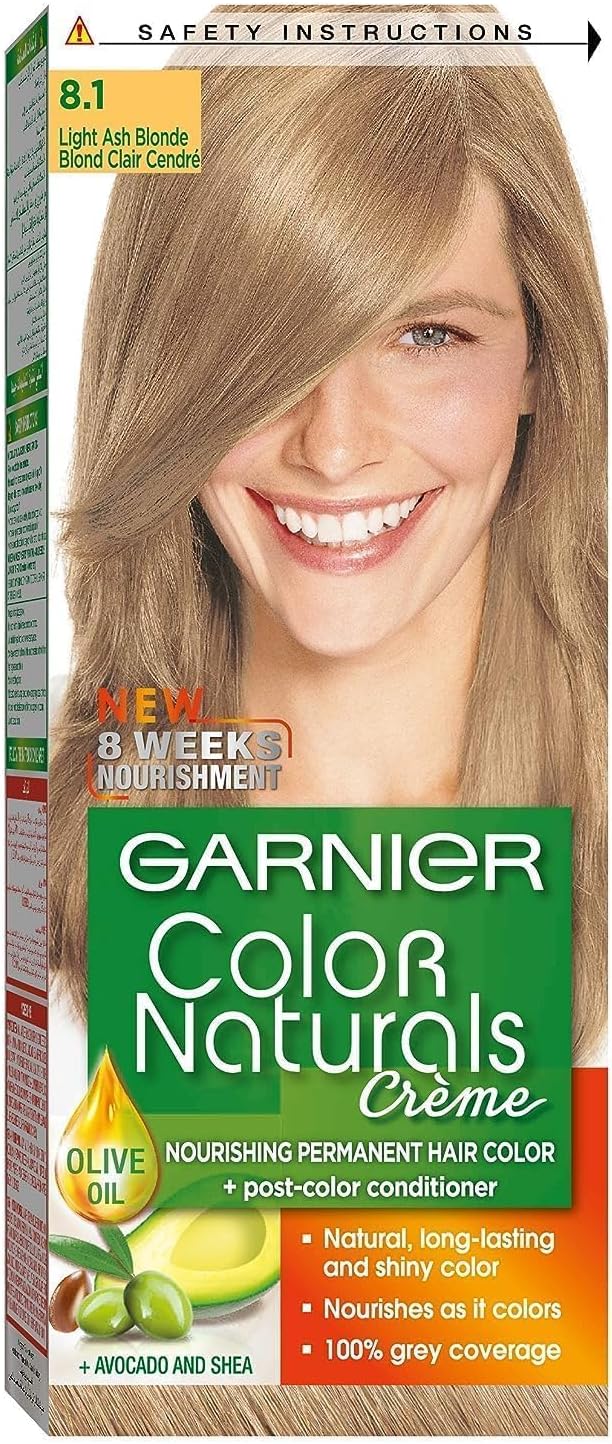 Garnier Hair Colour, With 3 Nourishing Oils, Grey Covereage, Long-lasting Shiny Colour, Natural-looking Result, For All Hair Types, Color Naturals Crème, 8.1 Light Ash Blonde